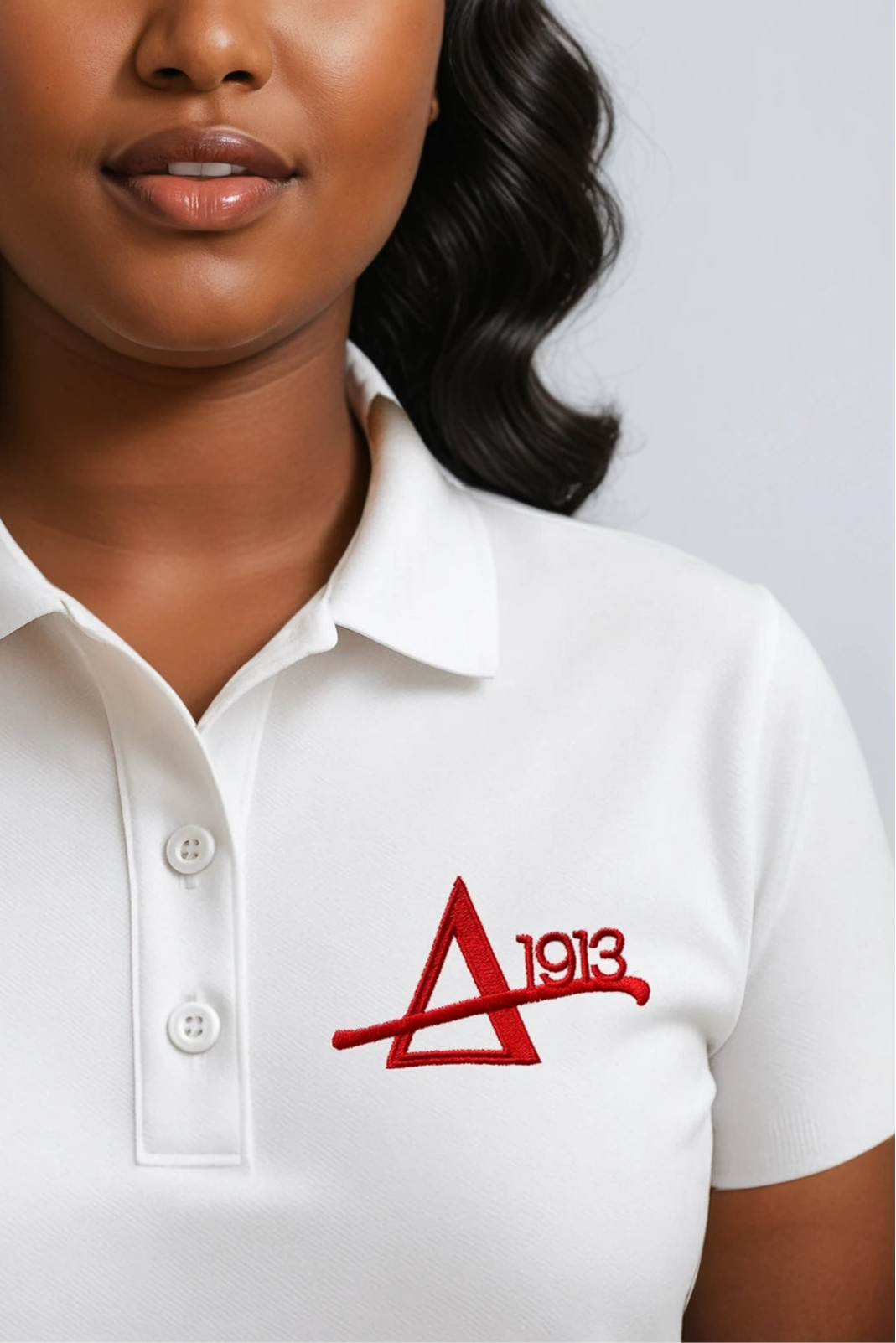 Giselle is that crisp white polo that instantly upgrades your Nalia game. With bold red Delta and 1913 design over the heart, she’s made for those moments when you want to show up polished, proud, and ready to serve. Whether you’re heading to a chapter meeting, a service project, or just want to flex your sisterhood style on a casual Friday, Giselle’s got your back. She’s comfortable, classic, and always a conversation starter.