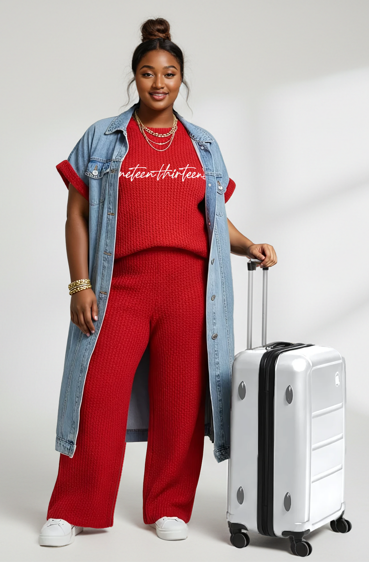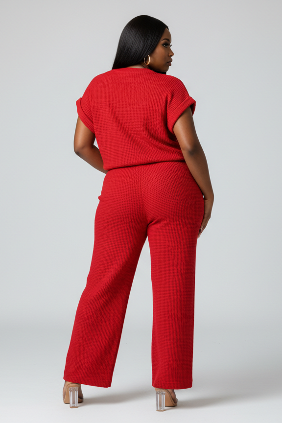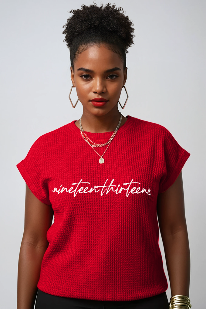 Kenyeta is all about comfort with a side of Delta boldness. This ruby red waffle-knit set feels just as cozy as your favorite loungewear but looks totally elevated, thanks to the tailored fit and cream "Nineteen Thirteen" script stitched across the top. It’s an easy way to stand out—polished, playful, and unmistakably Delta. Perfect for brunch, travel, or just repping subtly wherever you go.