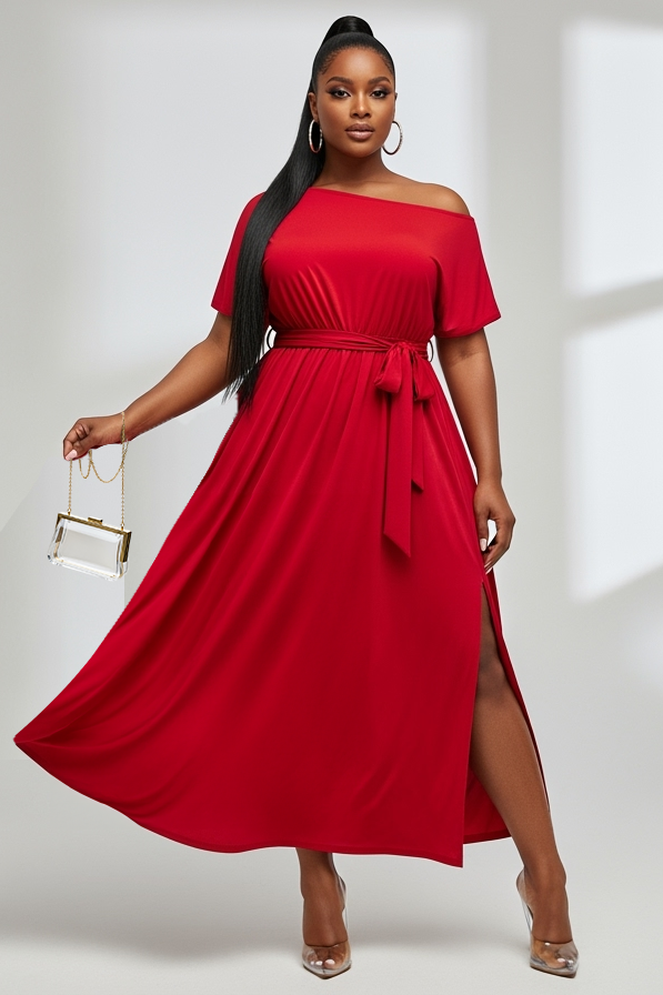 The Mariah Dress is a true showstopper! This solid red, off-the-shoulder stunner brings all the drama—perfect for work, church, meetings, or any formal occasion. The waist belt, side slit, and yes, real pockets (!!) mean you get chic, sexy style without sacrificing comfort. The stretchy, breathable fabric hugs in all the right places and keeps you feeling fabulous all day.