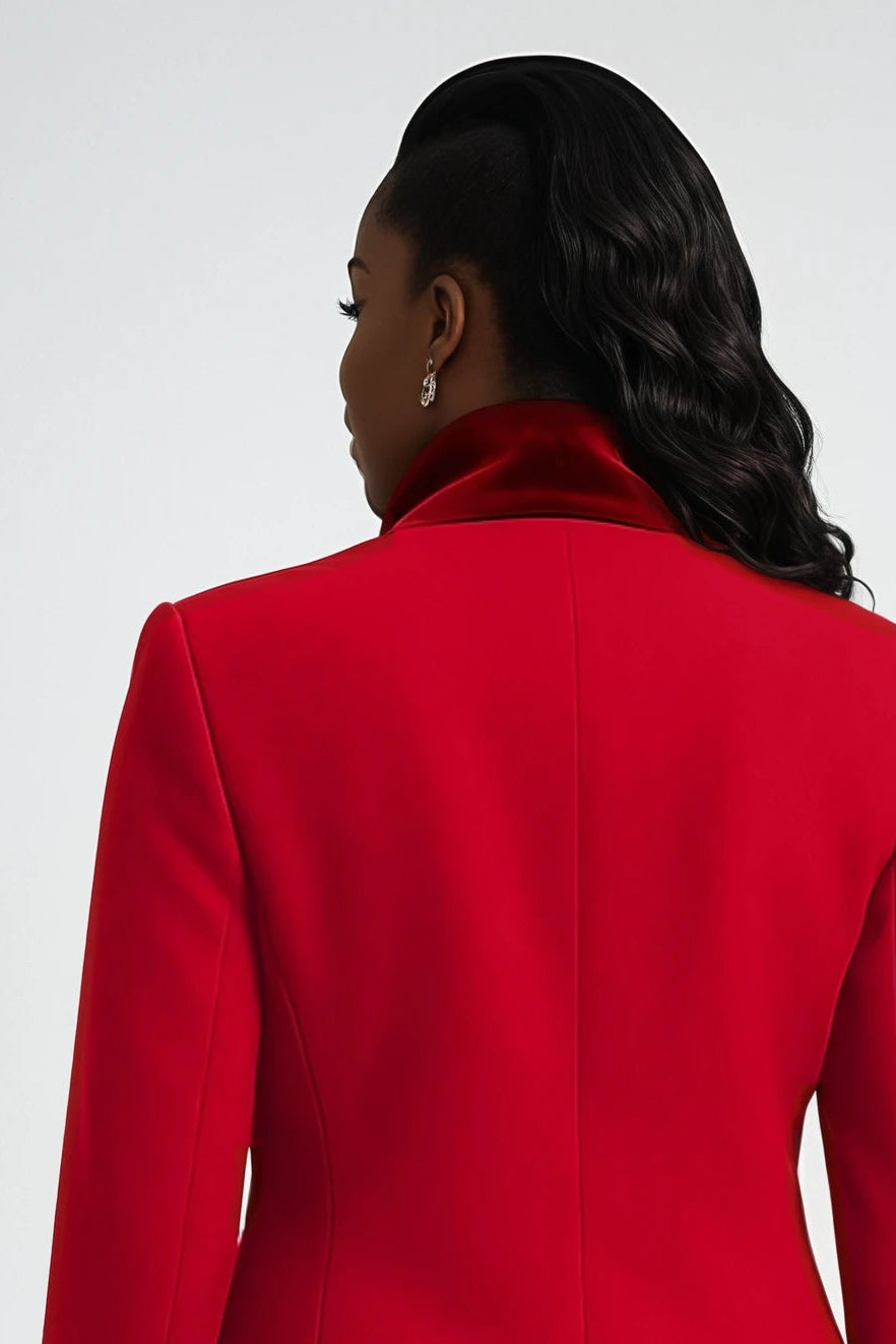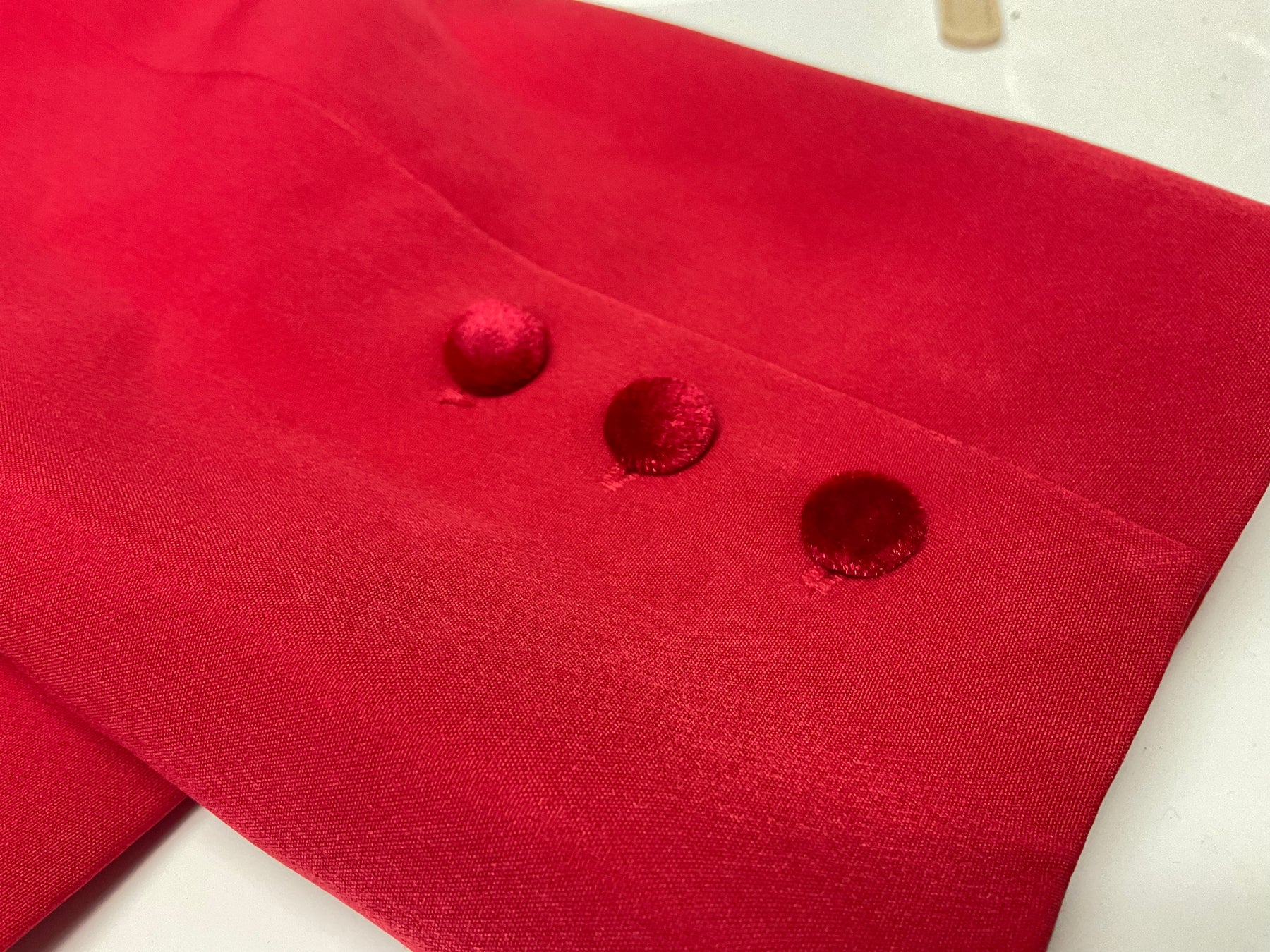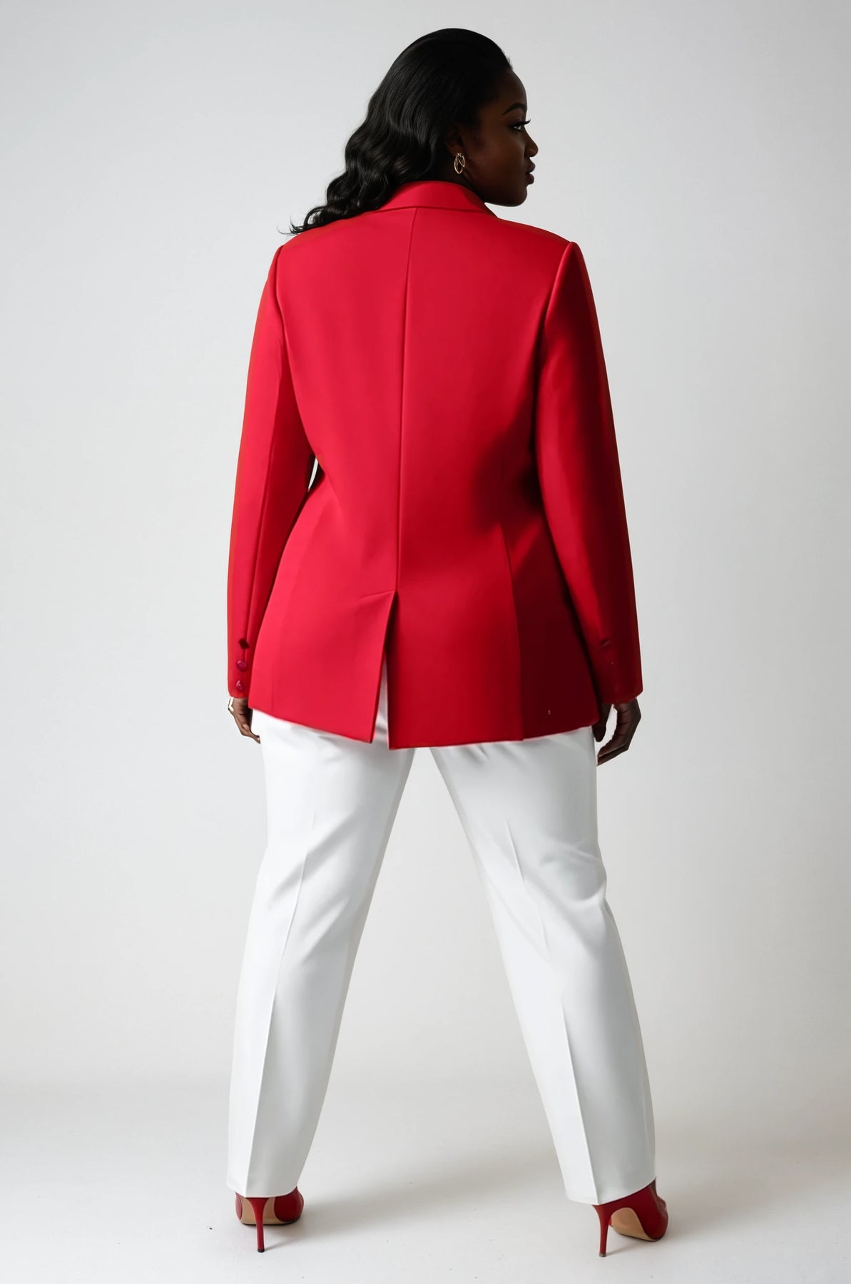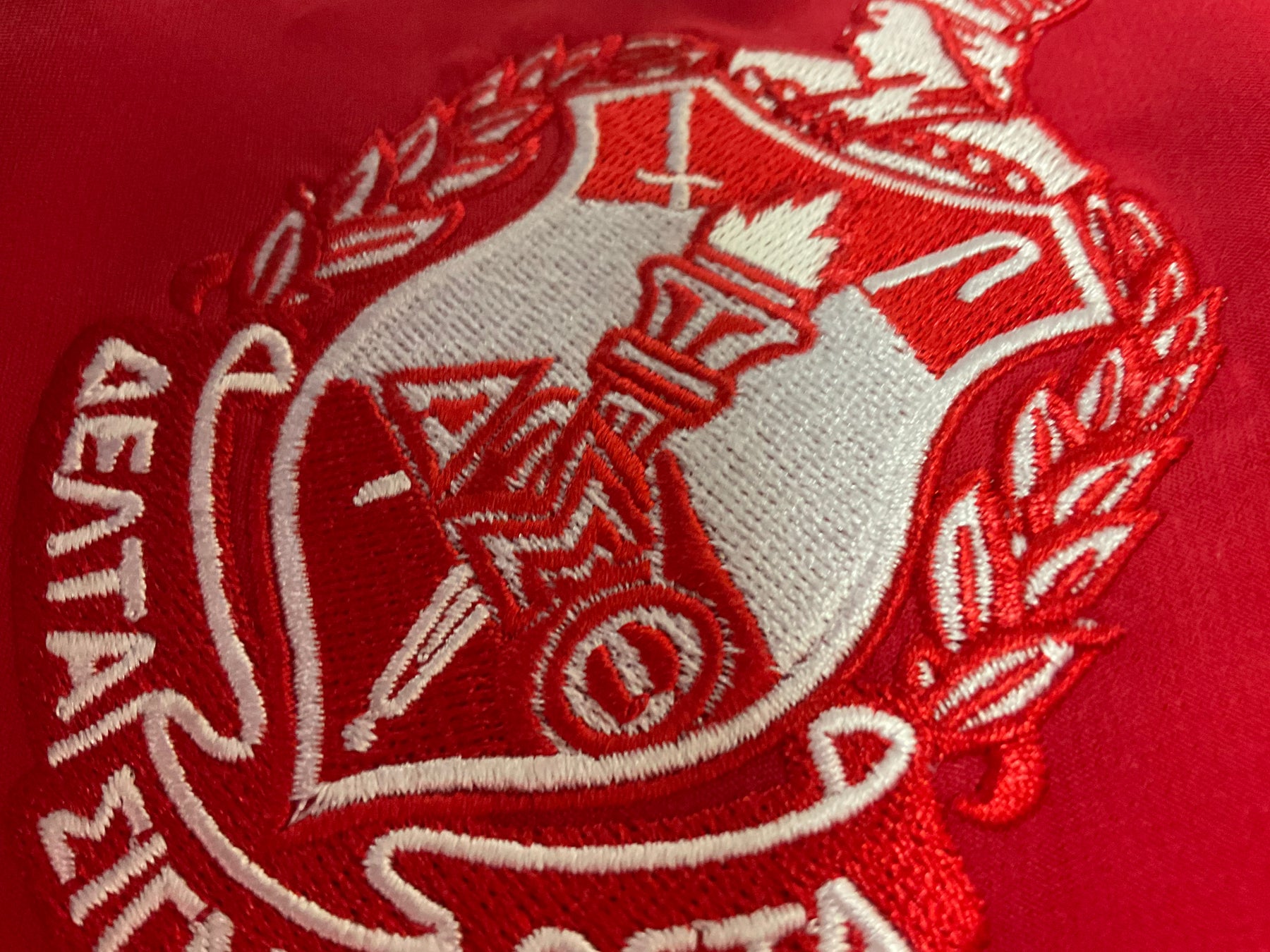 Olivia the Blazer is that “oh, you noticed?” piece. She’s sharp, luxe, and just a little bit extra—available in red or black, with velvet pocket flaps and buttons for that touch of drama. Crafted from a luxe blend of 88% premium polyester and 12% stretch spandex, this blazer delivers a flawless drape with just the right amount of give. Pop the collar and you’ll catch a flash of velvet underneath (because details matter). The custom lining is all about Delta Sigma Theta pride—bold writing inside, so you’re repping even when the blazer’s closed. And yes, she’s got the DST crest over the heart, because you deserve to wear your membership in style.