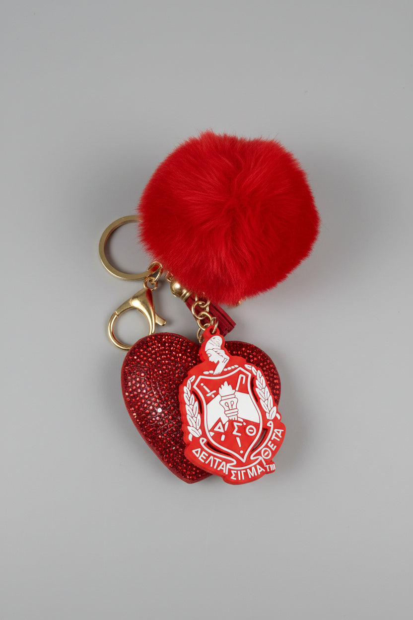 Everybody’s going to want their hands on the Sissy 1913 Keychain—she’s small, but she’s doing the most (in the best way). With a sparkly red rhinestone heart, a PVC Delta Sigma Theta sorority crest, and a bold red pom pom, this keychain brings the perfect mix of cute, luxe, and statement-making. Clip her to your keys, purse, belt bag, or luggage and let your 1913 shine everywhere you go.