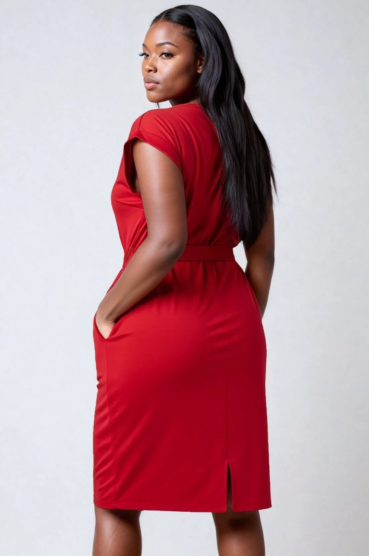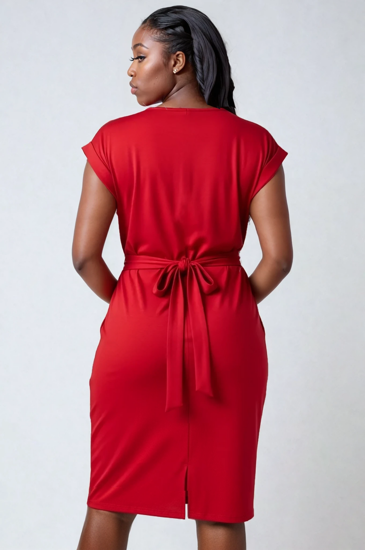 Taylor is made from a comfy, stretchy 90% polyester/10% spandex blend that’s forgiving and flattering. She runs large, but if you’re between sizes and want a snatched fit, size down. Adjustable belt ties mean you can always find your perfect fit.