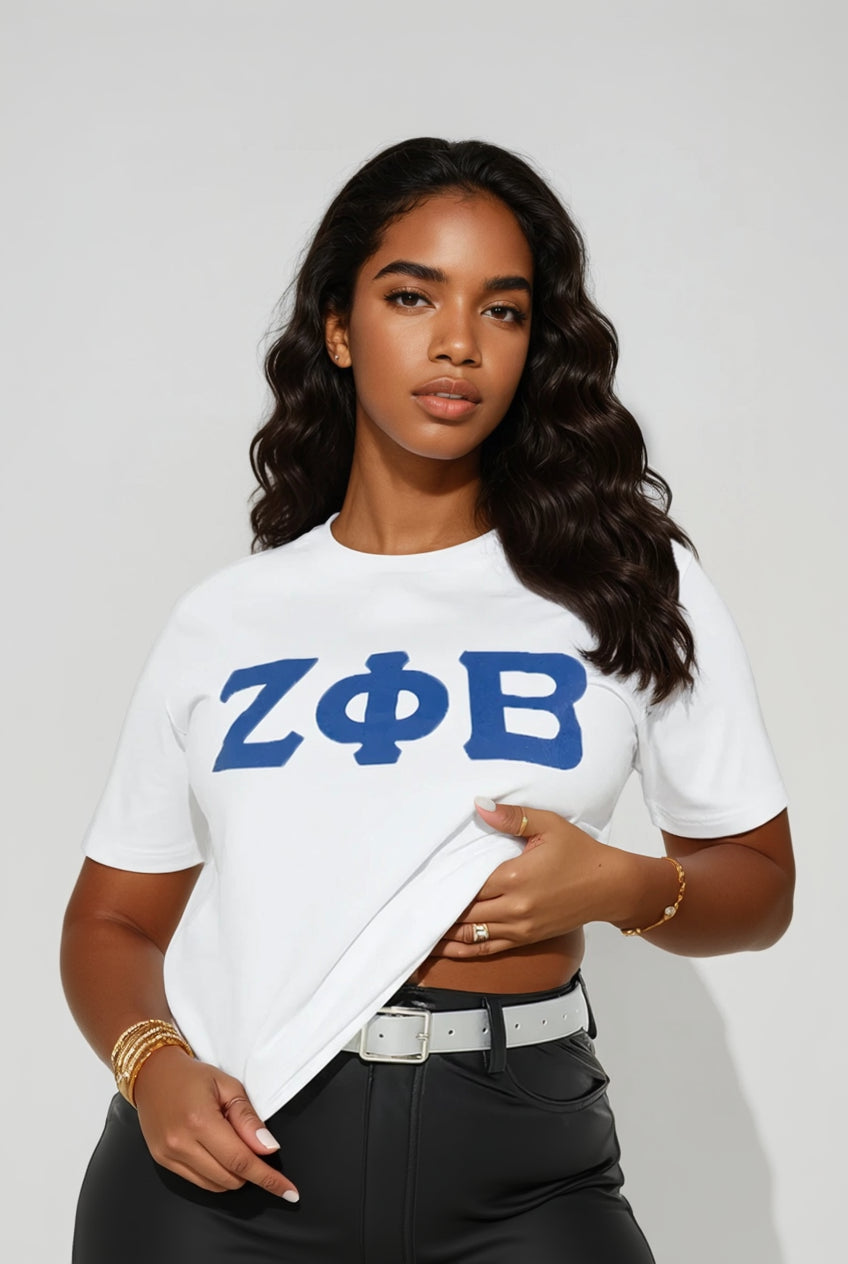 Get ready for compliments—this is our fresh spin on the classic crossing shirt, featuring Zeta Phi Beta Greek letters in crisp white screen print. Choose your vibe: vivacious royal blue or clean white. Either way, it’s a bold, timeless piece that’s perfect for celebrating the moment and wearing long after the photos are posted.
