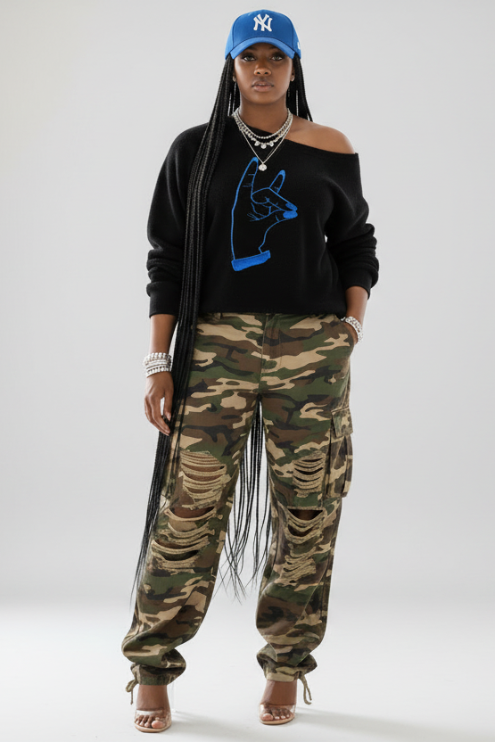 Kitty runs large—definitely size down for a true fit, or stick with your normal size if you want it extra slouchy. The off-the-shoulder look comes easy, no need to size up.