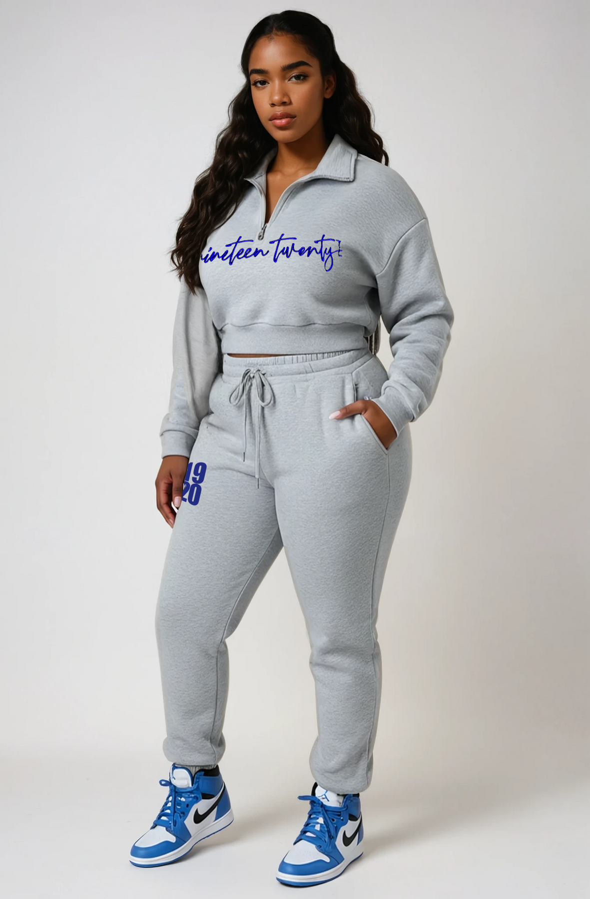 Wear the set together for a coordinated look on campus, at events, or while running errands. Mix and match the cropped sweatshirt with high-waisted jeans, or pair the joggers with your favorite tee for effortless Zeta vibes.