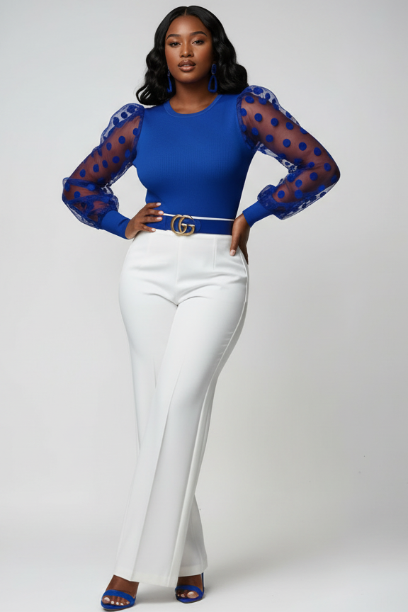 - Sheer Sleeve Royal Blue Blouse