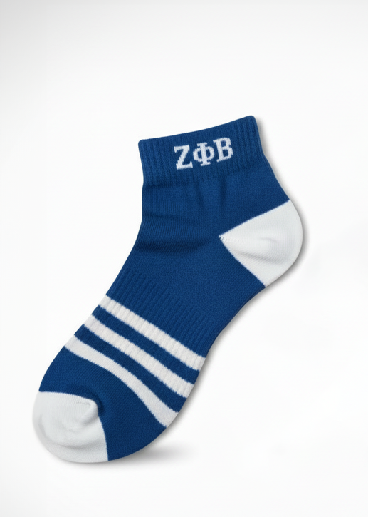 Step into Finer style with our Zeta Ankle Socks! These bold blue socks bring a pop of Zeta energy to any outfit. Perfect for chapter events, campus days, or just adding a little extra flair to your everyday look.