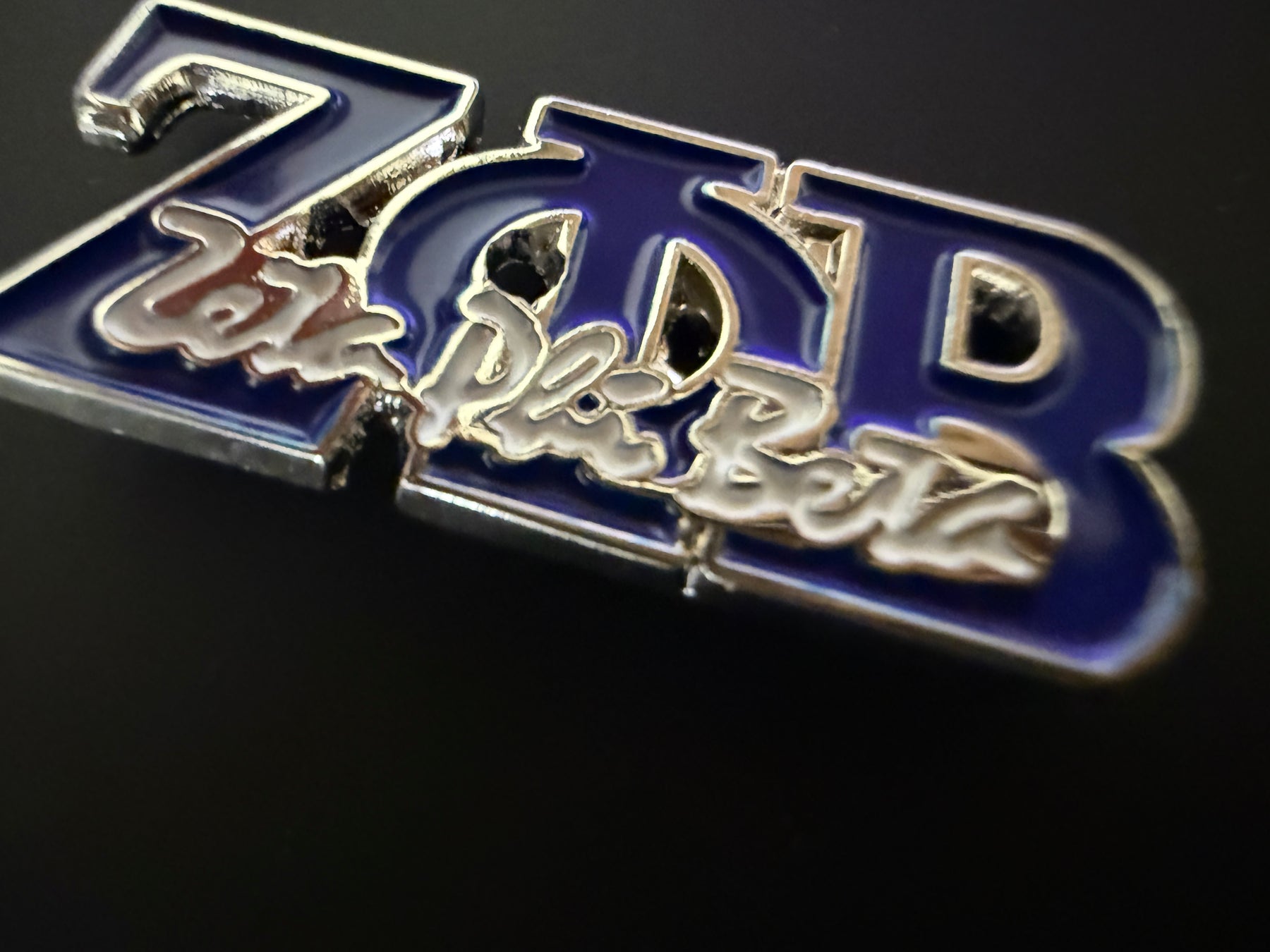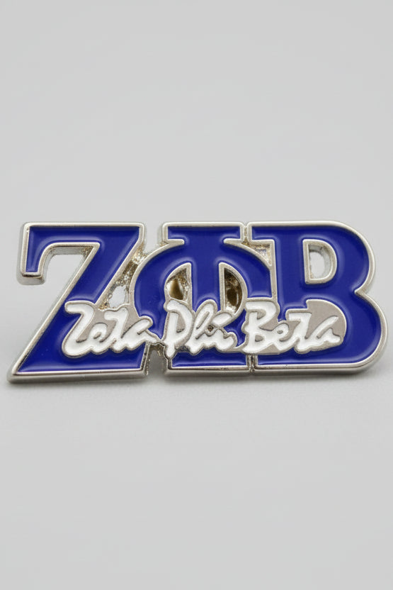 - Die-cut silver metal in the shape of Zeta Phi Beta Greek letters