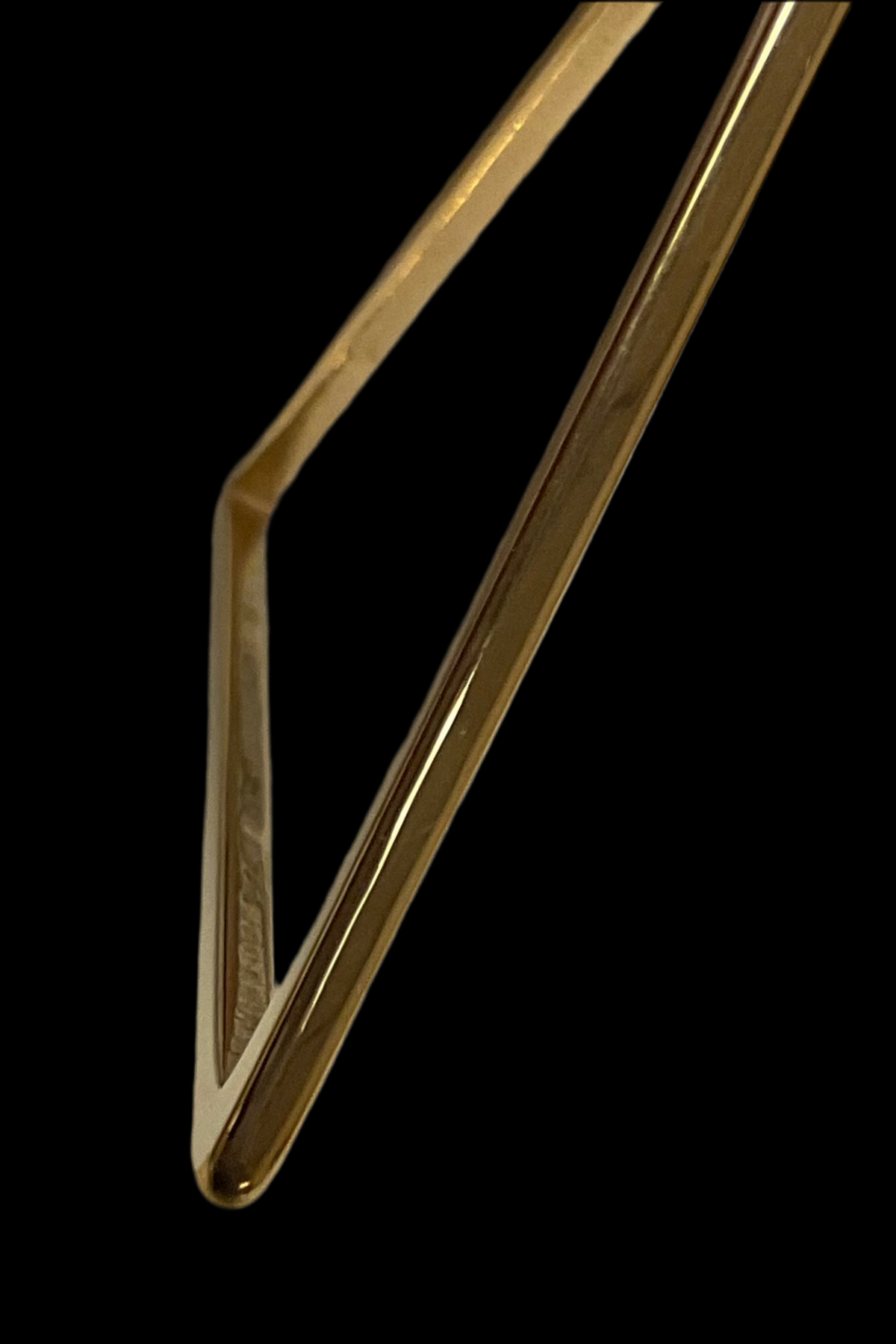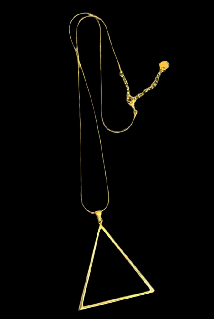 - Gold stainless steel delta-shaped (pyramid) pendant, approx. 2” tall